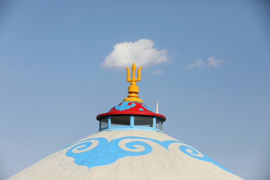希拉穆仁草原,一朵白云從蒙古包上空飄過(guò)。 記者 張楊攝影