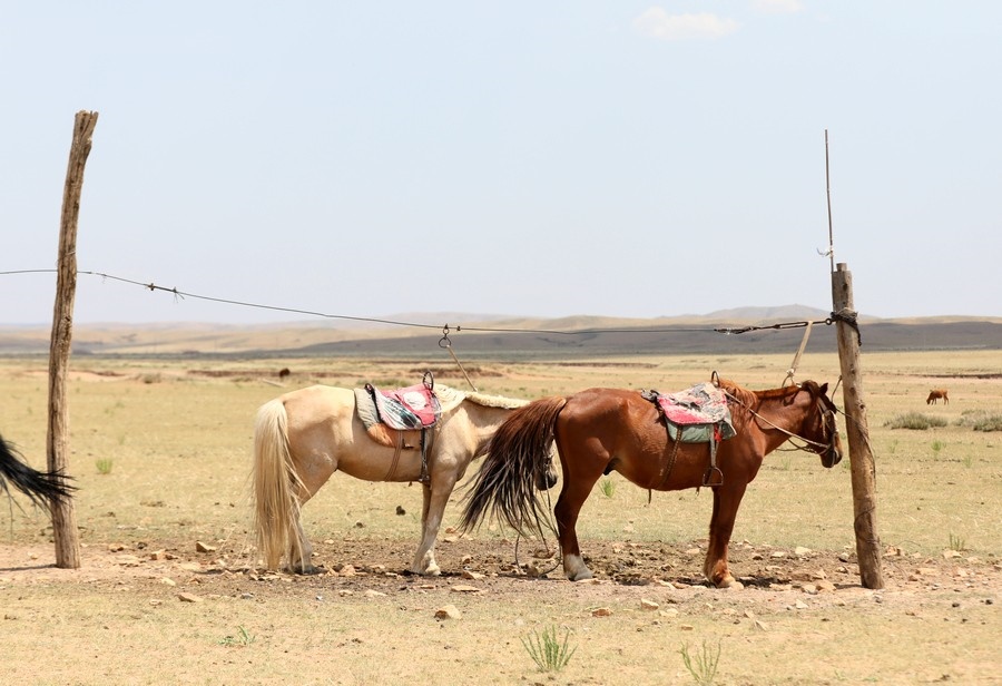 6月24日,游客在希拉穆仁草原騎馬游玩。