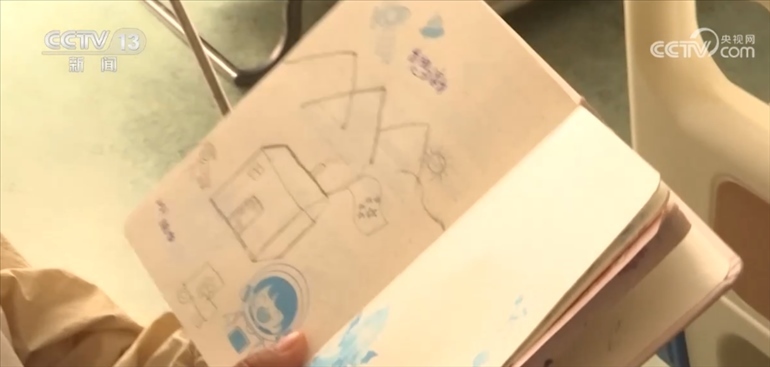 住院的時(shí)候,貢桑把對(duì)家鄉(xiāng)的思念融入了這幅畫(huà)中,遠(yuǎn)處的小房子是她的家,房子上掛著五星紅旗,她的妹妹和家人都是她心里最深的牽掛。