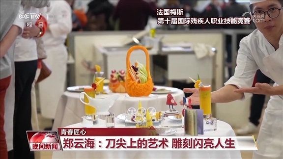 功夫不負(fù)有心人,鄭云海的雕刻技藝不斷精進(jìn),他也開(kāi)始自主設(shè)計(jì)創(chuàng)作作品,并斬獲了多項(xiàng)國(guó)內(nèi)比賽冠軍。今年3月,在法國(guó)梅斯舉辦的第十屆國(guó)際殘疾人職業(yè)技能競(jìng)賽食品雕刻項(xiàng)目比賽中,他奪得金牌,成為食品雕刻屆的世界冠軍。
