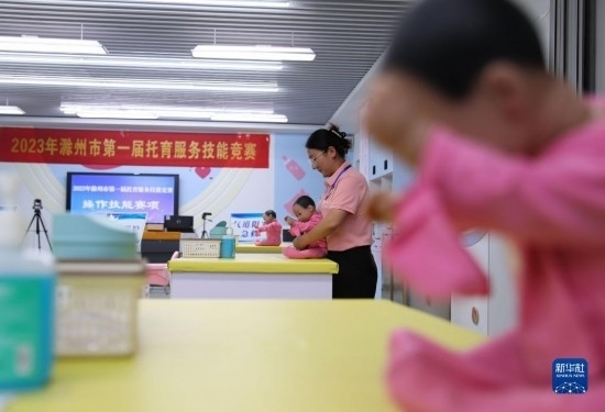這是7月8日拍攝的托育服務(wù)技能競賽現(xiàn)場。
