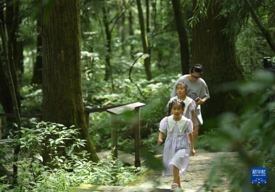 7月11日,人們在杭州臨安天目山風景區(qū)游玩。