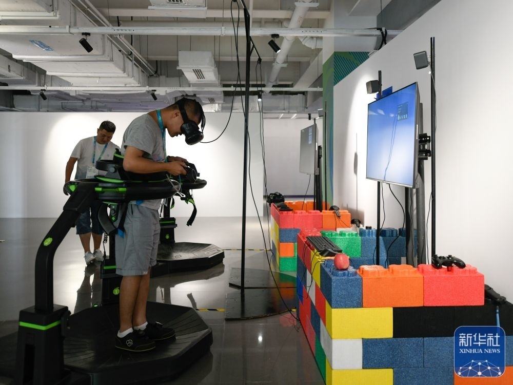 ↑7月14日,媒體工作人員在成都大運(yùn)會(huì)主媒體中心休閑娛樂區(qū)內(nèi)體驗(yàn)VR游戲。新華社記者 胥冰潔 攝