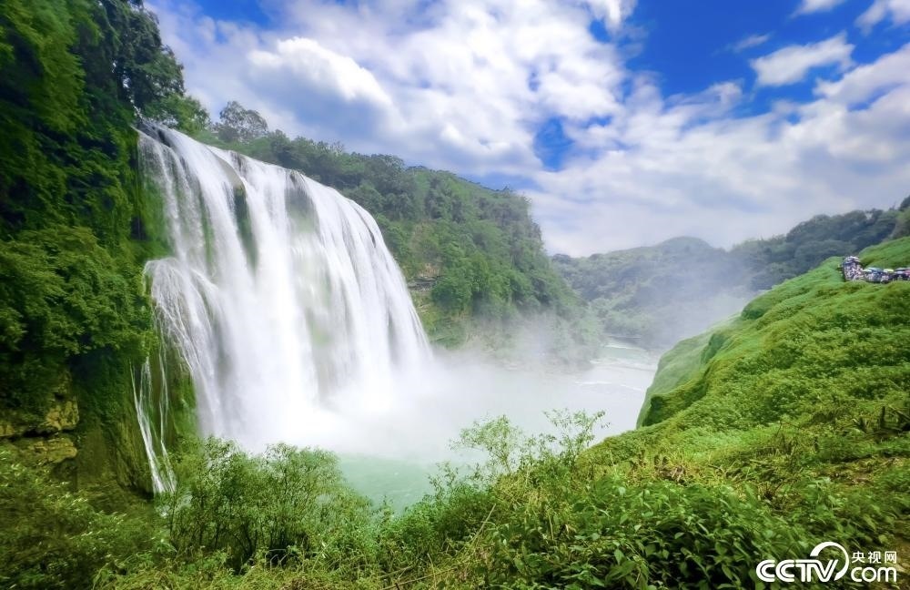 貴州安順,鎮(zhèn)寧布依族苗族自治縣黃果樹瀑布水霧升騰。