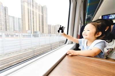 “大運號——成都都市圈旅游主題列車”上,小朋友拿著大熊貓文創(chuàng)產(chǎn)品。胡志強攝(人民圖片)