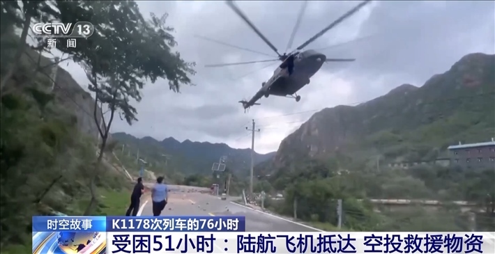 8月1日下午4:00,K1178次列車被困51小時后,某陸航旅4架滿載應(yīng)急物資的飛機,克服不利氣象因素,在北京門頭溝地區(qū)執(zhí)行空投任務(wù),并為K1178次列車空投救援物資。然而,由于沿河城站位于山谷中,地形狹長,周邊環(huán)境復(fù)雜,再加上氣象條件不好,空投一開始并不順利。