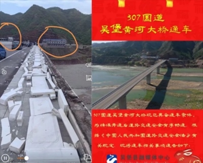 ·通車半年多,跨省黃河大橋的護欄被風(fēng)吹倒。陜西榆林市吳堡縣:成立調(diào)查組。