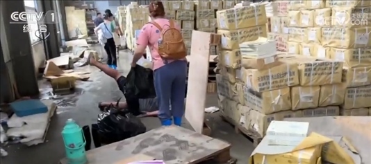 書(shū)商 鄒斌:對(duì),要銷(xiāo)毀的。里面有一些滋生的細(xì)菌,也不能再讀了。你們走慢點(diǎn),這個(gè)(地面)很滑。