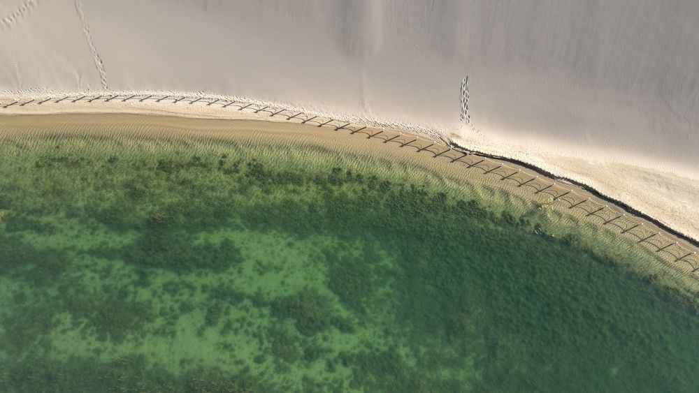 20多年來,月牙泉及其周邊實行嚴格的水資源管理。為維系沙泉共生的微妙平衡,泉水南北兩側(cè)的沙山被封禁,人們漫步在月牙泉周邊時,需要套上鞋套。