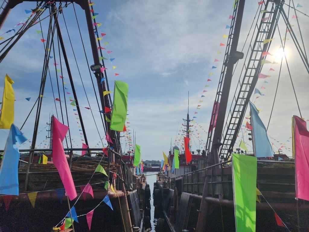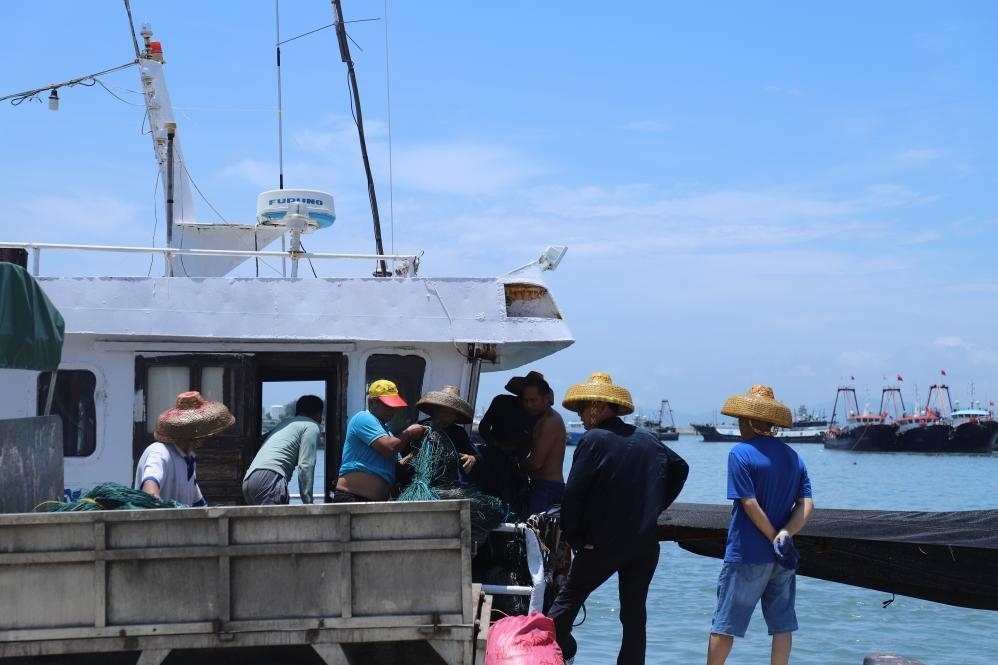 8月16日上午,溫潤的海風(fēng)輕拂海面,一排排漁船??吭陂l坡港海灣,汽笛聲陣陣起伏。休息了三個(gè)半月的漁民鄭建華坐在船頭,正翹首以盼正午時(shí)分開漁號(hào)角的吹響。