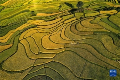 ·貴州省黔南布依族苗族自治州貴定縣沿山鎮(zhèn)臘利梯田里的水稻逐漸成熟,呈現(xiàn)出一幅豐收在望的秋日畫卷。