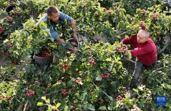 金秋時(shí)節(jié),河北省晉州市的1.2萬(wàn)畝山楂進(jìn)入成熟期,當(dāng)?shù)毓r(nóng)搶抓農(nóng)時(shí)適時(shí)采收,供應(yīng)市場(chǎng)。近年來(lái),晉州市引導(dǎo)農(nóng)民因地制宜發(fā)展山楂產(chǎn)業(yè),并推動(dòng)標(biāo)準(zhǔn)化管理、規(guī)?;N植,山楂產(chǎn)業(yè)已成為帶動(dòng)當(dāng)?shù)厝罕娫鍪盏奶厣a(chǎn)業(yè)。