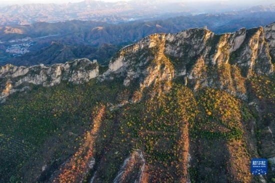 朝陽下的司馬臺長城(無人機全景照片,10月15日攝)。