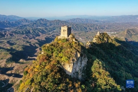 位于司馬臺長城東端的“望京樓”(無人機照片,10月15日攝)。