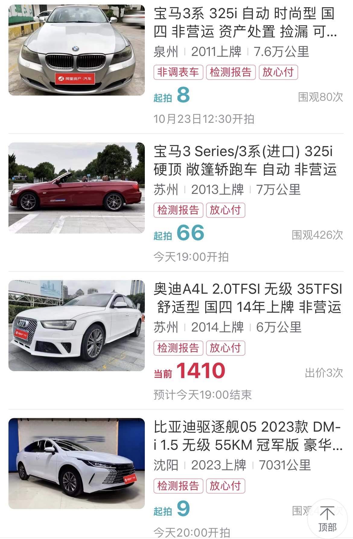 ▲拍賣平臺上多個(gè)拍賣公司掛出1元起拍賣豪車的信息 網(wǎng)絡(luò)截圖