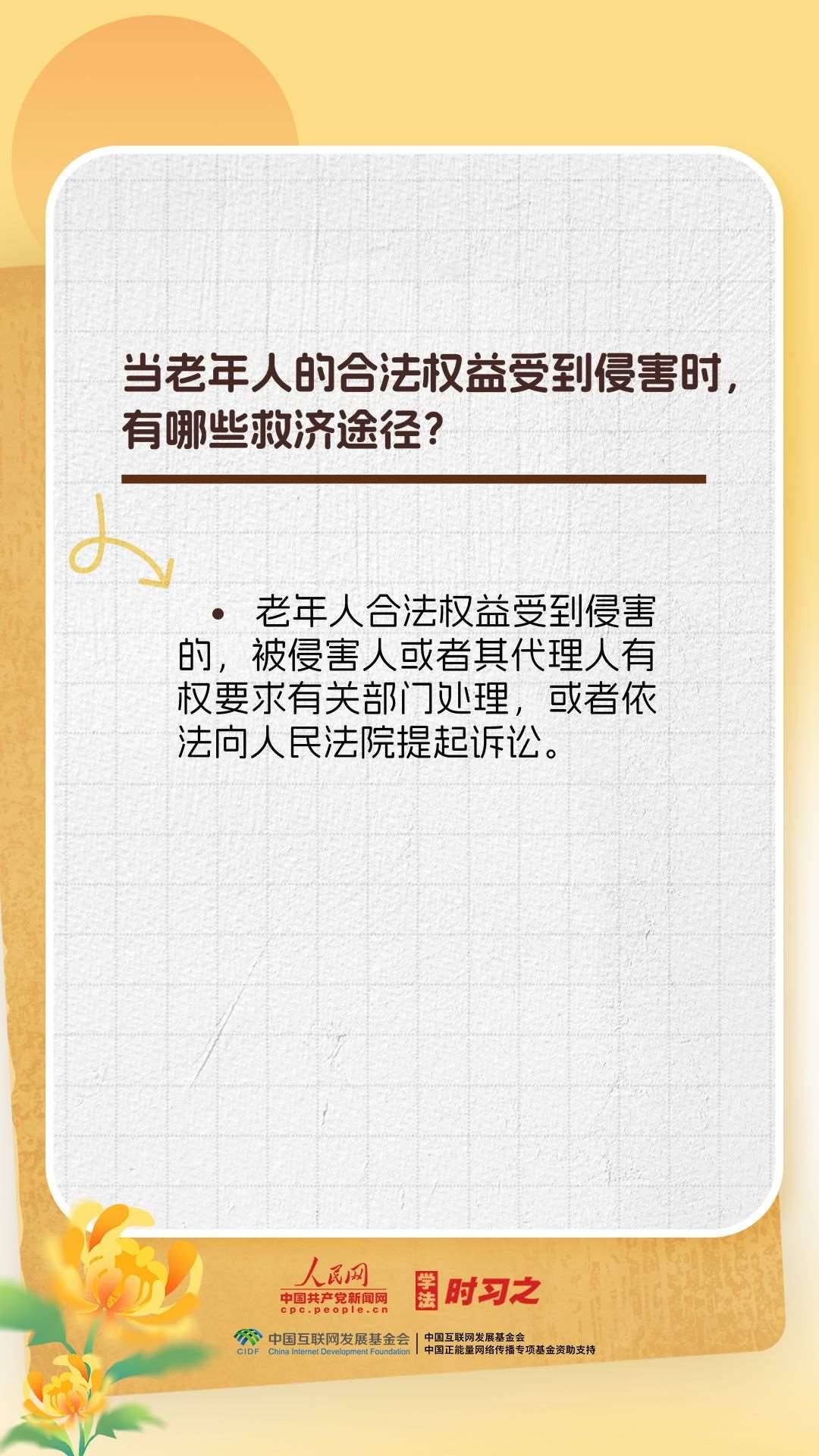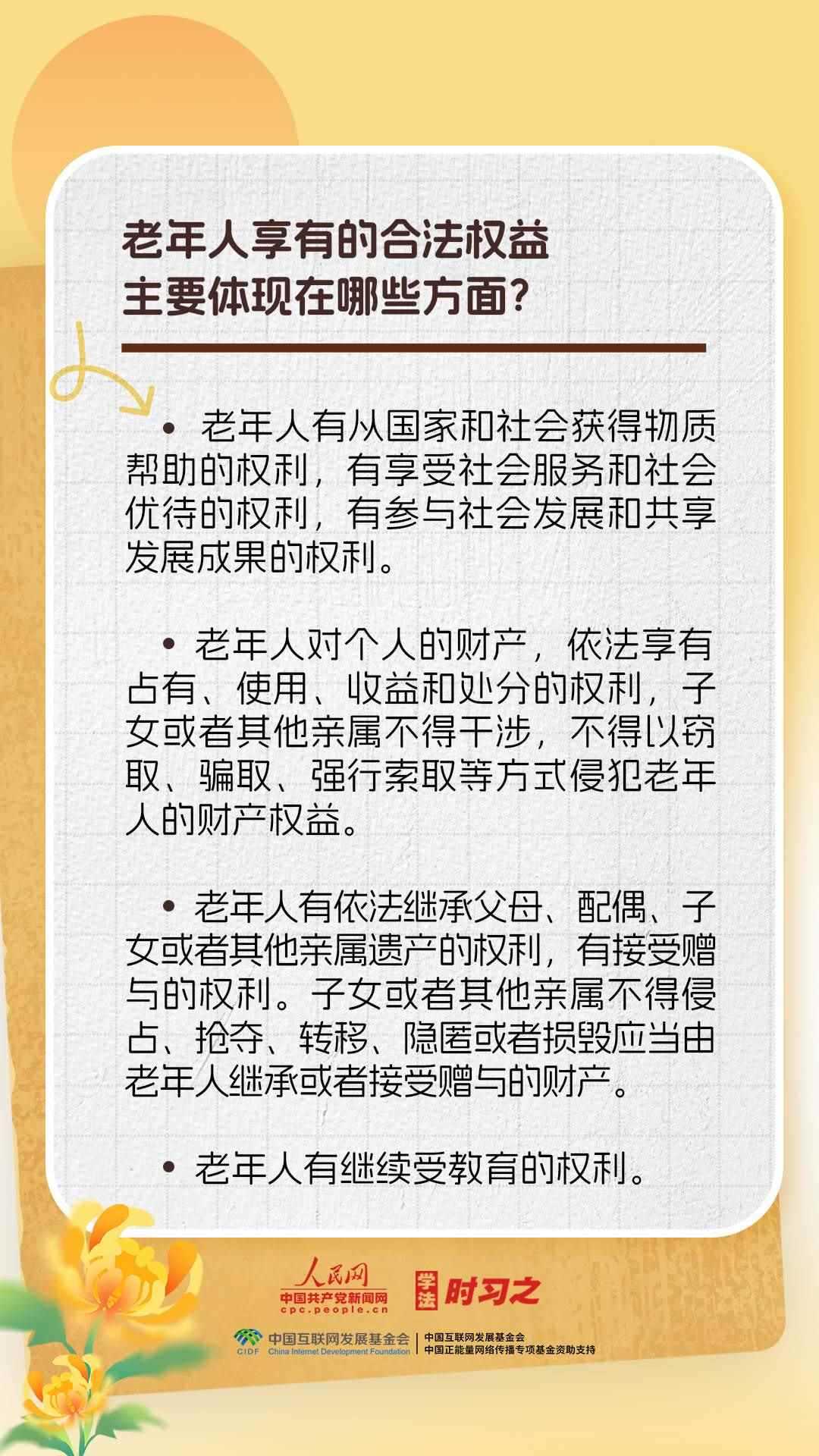 《中華人民共和國老年人權(quán)益保障法》的出臺(tái)進(jìn)一步保障了老年人的合法權(quán)益,弘揚(yáng)了中華民族敬老、養(yǎng)老、助老的美德。重陽節(jié),一起來了解老年人權(quán)益保障法的相關(guān)規(guī)定。