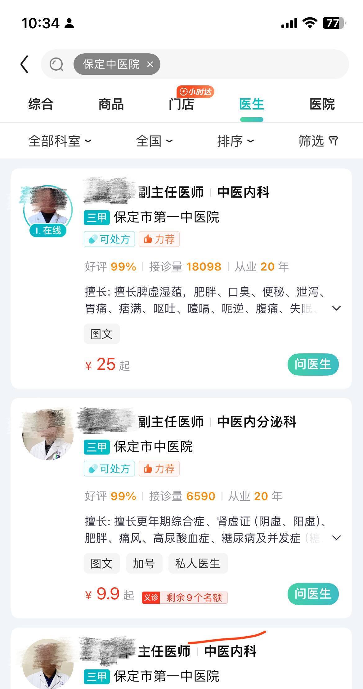 記者搜索互聯(lián)網(wǎng)投訴平臺(tái)黑貓投訴發(fā)現(xiàn),不少互聯(lián)網(wǎng)醫(yī)療APP都存在類似的科室錯(cuò)誤標(biāo)注、醫(yī)院錯(cuò)誤標(biāo)注的問題?;颊邊窍壬ㄟ^百度健康向腫瘤科分項(xiàng)的腫瘤內(nèi)科醫(yī)生問診,顯示的接診醫(yī)生來自北醫(yī)三院,按姓名在醫(yī)院官網(wǎng)進(jìn)行查詢,吳先生發(fā)現(xiàn)對(duì)方是腫瘤放療科醫(yī)生:我是在互聯(lián)網(wǎng)上咨詢問診,我問的是腫瘤內(nèi)科。他有標(biāo)記腫瘤內(nèi)科,我們問診的人,就會(huì)認(rèn)為他就是腫瘤內(nèi)科的醫(yī)生,我查到了醫(yī)生他是在北醫(yī)三院,他是放療科的醫(yī)生。