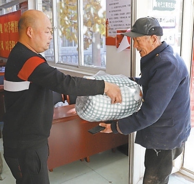 上午10時,走進碼頭村黨群服務中心,正碰上73歲老人杜金亭騎著電動三輪車,載著老伴來領新棉被。為保障困難群眾冬季取暖,涿州市民政局為全市殘疾人、“六類人群”免費發(fā)放過冬棉被。杜金亭的老伴肢體殘疾,是低保戶。“新房配上新棉被,這個冬天不愁了!”取上新棉被,杜金亭邀請記者去新家看一看。