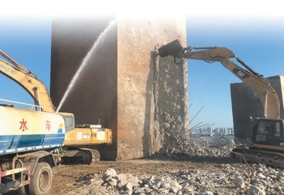 拆除工程剛啟動,便遇施工遲緩。市里隨即召集施工單位負(fù)責(zé)人,督促加緊施工。施工方也有難處,整個拆除工程總量超過600萬立方米,相當(dāng)于在海面挖出2400多個標(biāo)準(zhǔn)游泳池。一些參加拆除工程的工作人員表示:“從沒干過這么大體量的海上拆除作業(yè),僅勘察測算、設(shè)備調(diào)度就很費周折。”