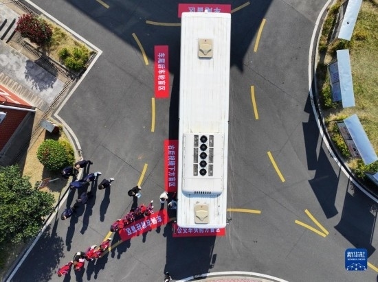 12月1日,在長沙市望城區(qū)新河學(xué)校,學(xué)生參加汽車盲區(qū)體驗活動(無人機照片)。