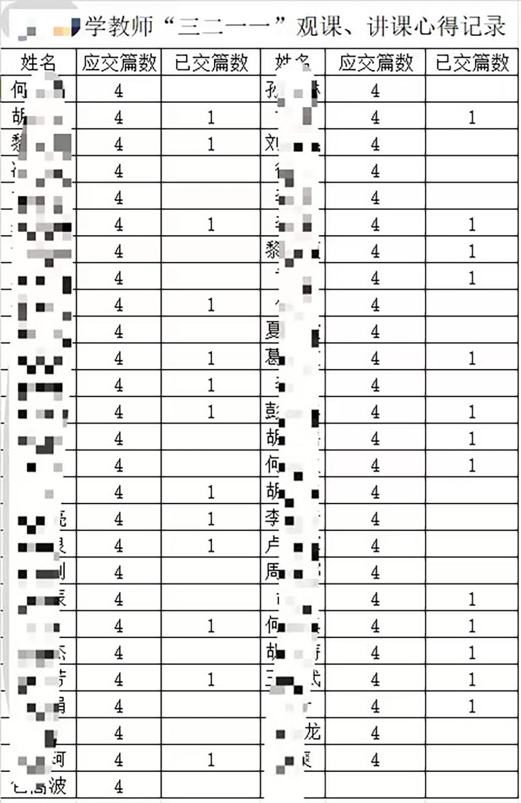 作為班主任,她承擔(dān)管理班級的責(zé)任,學(xué)校為了“看見”管理內(nèi)容,會安排教師們填寫各種各樣的表格,包括每日缺勤記錄表,每日、每周、每月、每學(xué)期的安全記錄表,班主任工作手冊,行為規(guī)范課堂記錄表,家訪表,家長會座談表等。表格一多,何雪夕免不了“造假”。