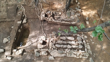 紅石砬子抗日根據(jù)地遺址,一處地窨子遺址的灶臺。新華社記者張博宇 攝