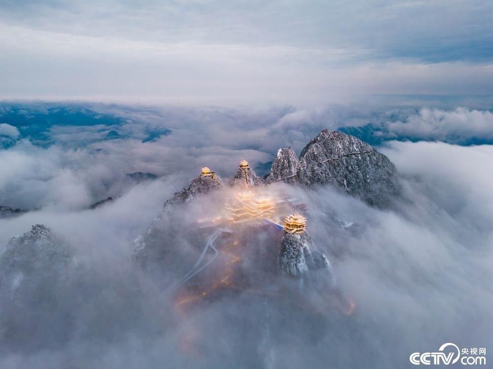 河南洛陽(yáng),雪后老君山云霧繚繞。