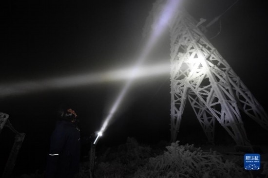 近日,湖南省遭遇一輪低溫冰凍天氣。為保障供電穩(wěn)定,12月15日,輸電運(yùn)檢工尹斌和徒弟龍昱君前往西晃山駐守觀測(cè)冰情。他們將在西晃山值守,直到天氣轉(zhuǎn)暖、冰雪消融……