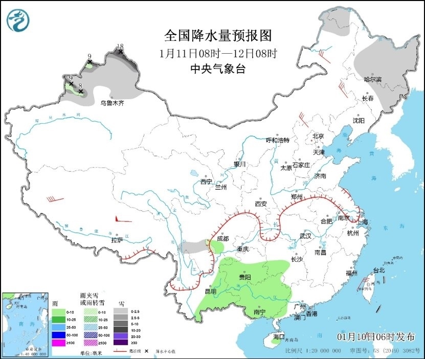 人民網(wǎng)北京1月10日電 (溫璐、高清揚)據(jù)中國氣象局官網(wǎng)消息,預計未來三天,新疆北部將有持續(xù)性降雪,部分地區(qū)累計降雪量較大,公眾需關(guān)注持續(xù)降雪天氣對日常生活及交通出行的不利影響,注意安全。另外,未來幾天,冷空氣活動較為頻繁,北方部分地區(qū)氣溫將有明顯起伏。