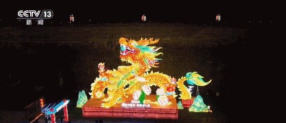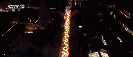 由303個(gè)宮燈拼接而成的兩條“巨龍”