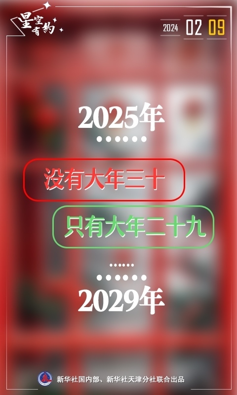 新華社天津1月13日電(記者周潤?。┙找粍t“未來5年都沒有大年三十”的消息引發(fā)公眾關(guān)注。消息稱,2024年2月9日是近年來最后一個大年三十,因為從2025年起至2029年都沒有大年三十,只有大年二十九。天文科普專家表示,大年三十時有時無是正常歷法現(xiàn)象,系農(nóng)歷大小月所致。