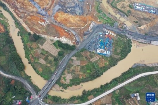 平陸運(yùn)河企石樞紐建設(shè)現(xiàn)場(chǎng)(1月20日攝,無(wú)人機(jī)照片)。