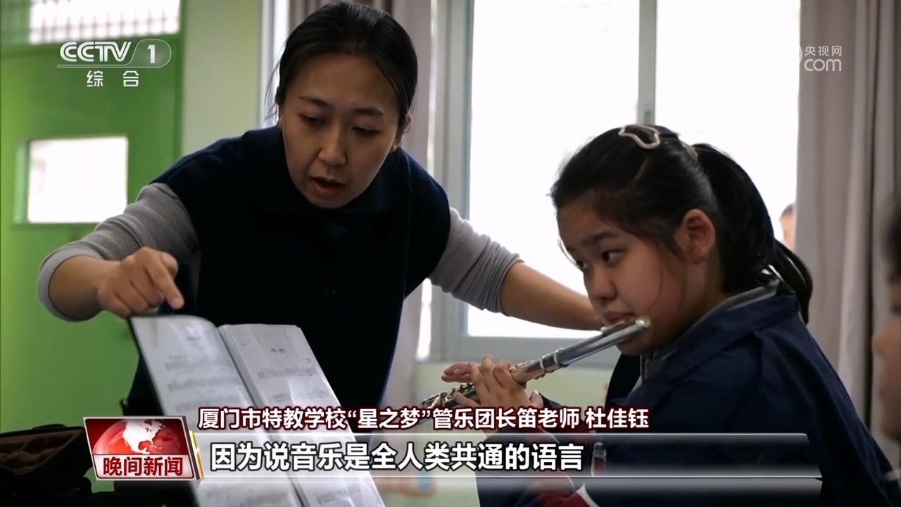 廈門市特教學(xué)校“星之夢”管樂團(tuán)長笛老師 杜佳鈺:因?yàn)檎f音樂是全人類共通的語言,我希望這件事情的意義也是能不要把這些孩子排除在全人類的音樂的共同事業(yè)的范圍之外。