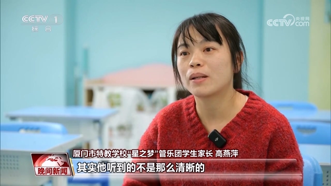 廈門市特教學(xué)校“星之夢”管樂團(tuán)學(xué)生家長 高燕萍:其實(shí)他聽到的不是那么清晰的,但是他會覺得這個聲音很美,他用手語告訴我,他覺得很美。