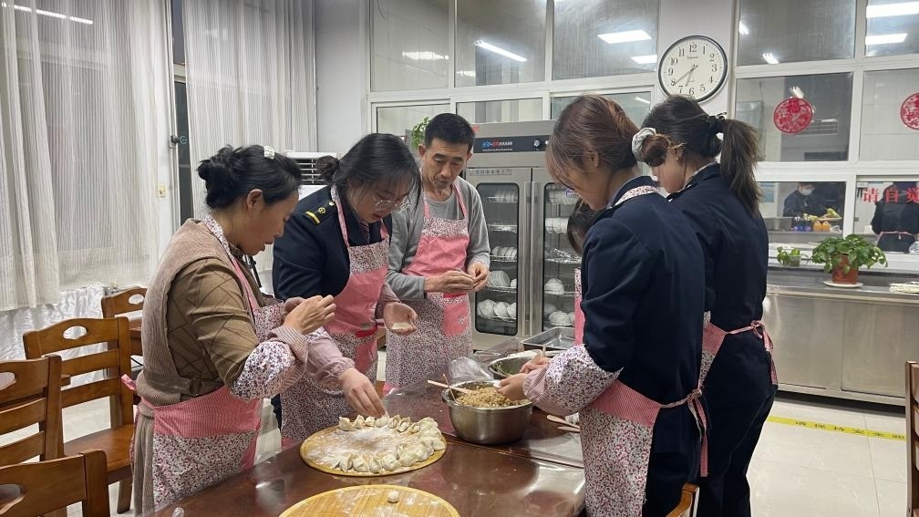 18時(shí)許,他們邀請(qǐng)王靚怡一家人以及與她同批入職的呂非凡、王悅、姜紅南等3名東北女孩,來到車站食堂包餃子。