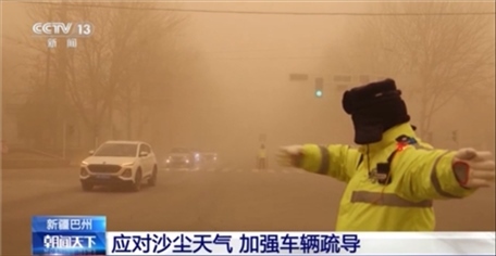 新疆巴州應(yīng)對沙塵天氣 加強車輛疏導(dǎo)