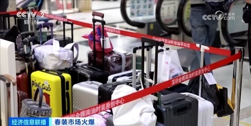 除了工廠訂單增加之外,服裝批發(fā)市場(chǎng)也迎來“開門紅”,在深圳南油服裝批發(fā)市場(chǎng),人頭攢動(dòng),店鋪門口都堆疊著即將發(fā)貨的大包小包。