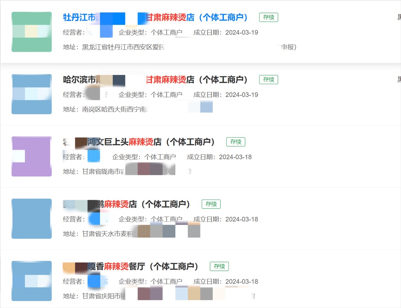 根據(jù)天眼查,今年2月至今,全國(guó)新開(kāi)業(yè)的“甘肅麻辣燙”店已累計(jì)超過(guò)150家。