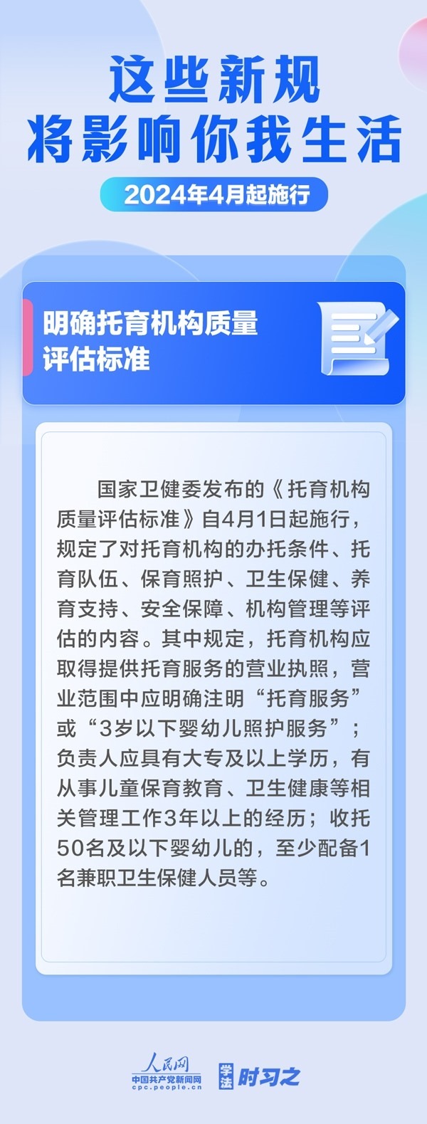 加強(qiáng)中央儲備棉管理;明確托育機(jī)構(gòu)質(zhì)量評估標(biāo)準(zhǔn);規(guī)范可再生能源電量收購……4月起,這些新規(guī)施行,將影響你我生活。