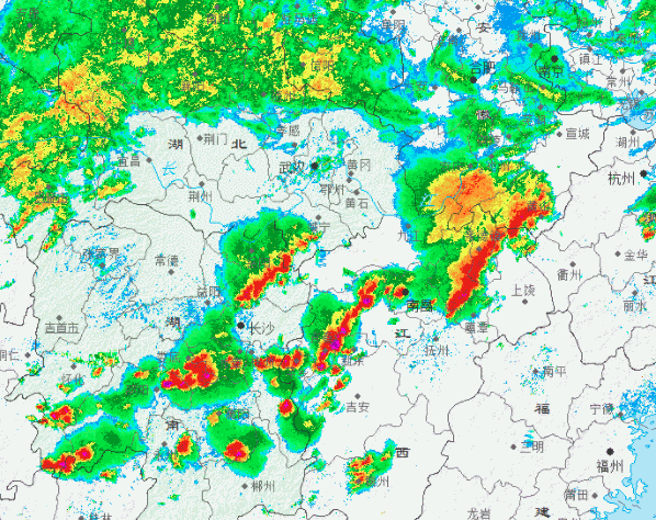 今天,南昌等地對(duì)流云團(tuán)一波接一波。圖:中央氣象臺(tái)