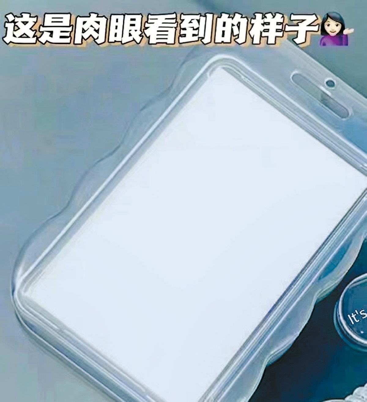 商家還表示,卡包中可以放上真實的飯卡等,遮蓋住手機的背面,手機正面的屏幕在外人看來,是純粹的白色,必須戴上眼鏡才能看到屏幕上的內容。