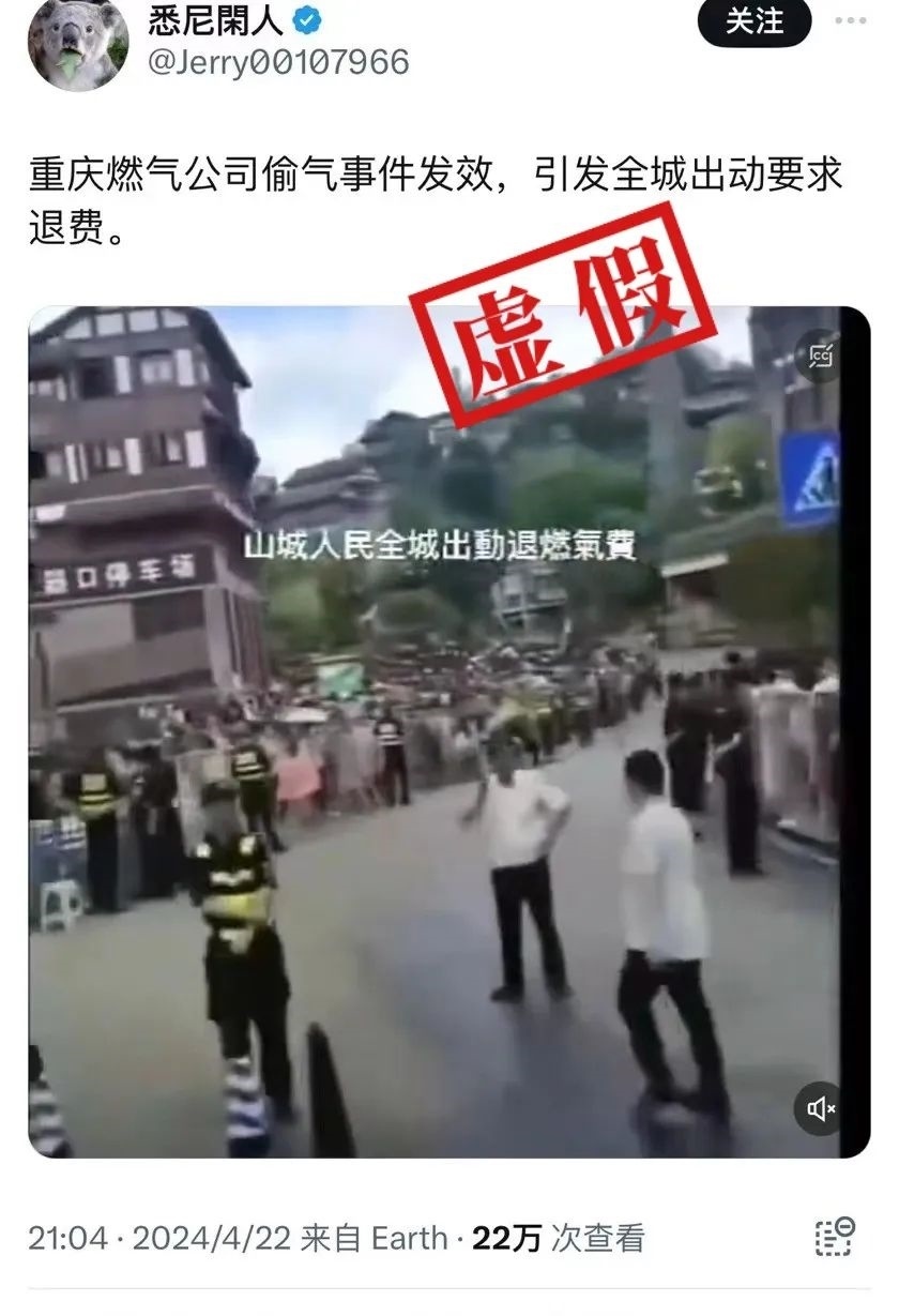 近期,海外社交平臺有網(wǎng)友上傳一則視頻并聲稱畫面為“重慶全城出動要求退燃?xì)赓M(fèi)”,然而該視頻存在諸多疑點,似乎并非網(wǎng)傳所述場景。