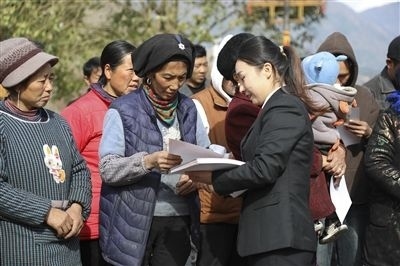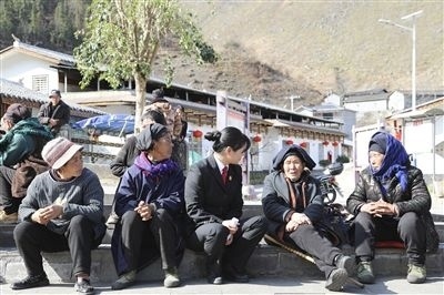 圖①:法院干警剛到彝寨,彝族同胞便聚集過(guò)來(lái)。