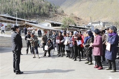 陽(yáng)春三月,萬(wàn)物復(fù)蘇。繁花盛開(kāi),如詩(shī)如畫(huà)。四川省石棉縣人民法院美羅女子法庭來(lái)到安順場(chǎng)鎮(zhèn)新場(chǎng)村彝寨,開(kāi)展“雙語(yǔ)”普法活動(dòng)。