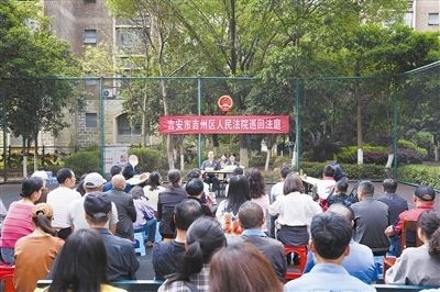 近日,江西省吉安市吉州區(qū)人民法院民事庭將巡回法庭搬進(jìn)了桃源盛景小區(qū),對三起物業(yè)服務(wù)合同糾紛案進(jìn)行了公開審理,并邀請社區(qū)代表、小區(qū)部分業(yè)主旁聽。巡回法庭采取了“庭審+普法”的形式以案釋法,引導(dǎo)業(yè)主合理維權(quán),倡導(dǎo)物業(yè)公司積極履行合同義務(wù),取得了良好的效果。圖為巡回審理現(xiàn)場。