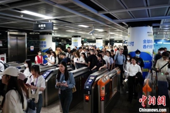 “五一”假期5天間,廣州地鐵總運(yùn)客約4500萬人次。圖為出入地鐵站的人潮。廣州地鐵集團(tuán)供圖