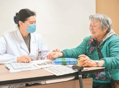 安徽省合肥市廬陽區(qū)養(yǎng)老服務(wù)指導(dǎo)中心與安徽中醫(yī)藥大學(xué)門診部(國醫(yī)堂)醫(yī)聯(lián)體合作揭牌,該醫(yī)聯(lián)體開設(shè)中醫(yī)科門診,助力老年群體樂享健康的晚年生活。圖為安徽中醫(yī)藥大學(xué)門診部(國醫(yī)堂)專家(左)為廬陽區(qū)老年人義診治療。袁 兵攝(人民圖片)
