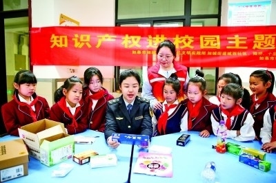 江蘇如皋市版權局聯(lián)合市場監(jiān)督等部門,圍繞商標權、專利權等開展“知識產(chǎn)權進校園”宣傳教育活動。新華社發(fā)
