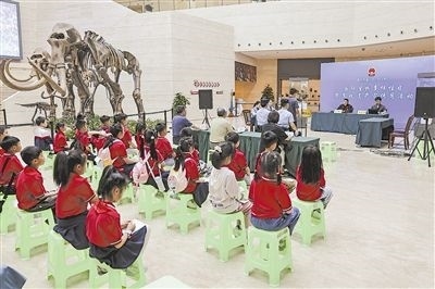 圖①:法官在珍品庫房為小學(xué)生講解野生動物保護(hù)法律知識。