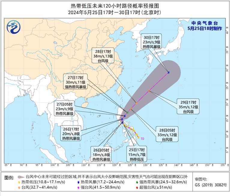 再看看菲律賓附近熱帶低壓,其中心今天下午5點鐘位于菲律賓馬尼拉東南方大約225公里的菲律賓群島中部,預計將于未來12小時內(nèi)加強為今年第1號臺風,明后天將在菲律賓呂宋島東部海面逐漸轉(zhuǎn)向東北方向移動。
